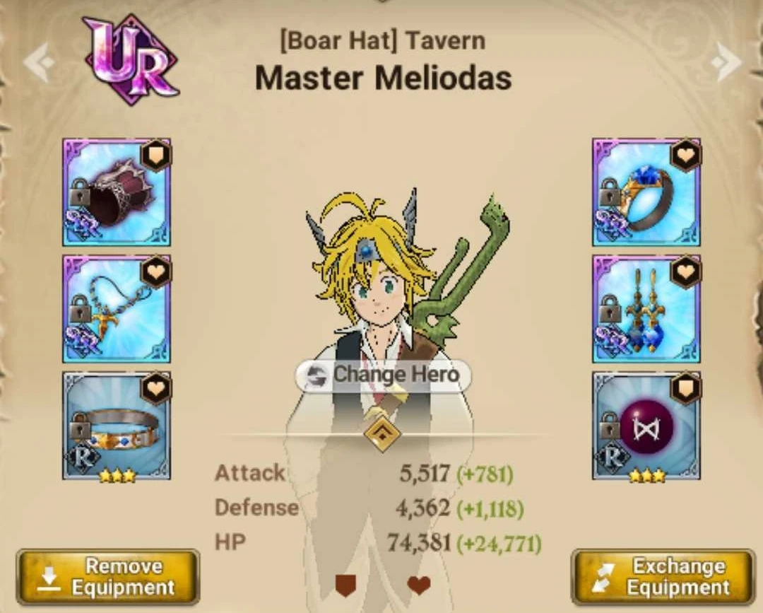 The Equipment provides a significant boost in your heroes’ Combat Class. Given that your main heroes have the best gear on, wearing basic HP/Defense sets for the rest of your heroes will yield a massive boost on your account CC.