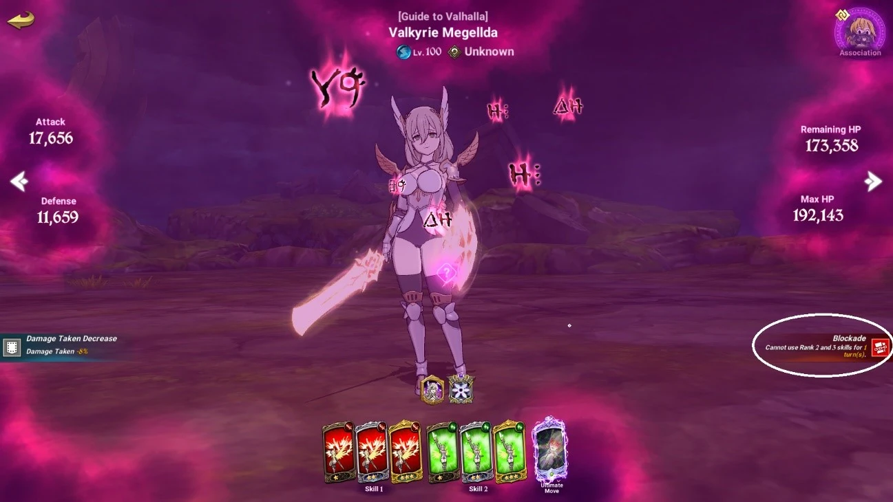 In Phase 3, there is a new gimmick introduced. The boss will seal a certain type of skill every turn for multiple turns (long enough that you will likely finish the battle before it wears off) and it cannot be removed. The order is as follows: Stance, Debuff, Buff, Attack skills, and lastly Ultimate Moves. If you take so long that you get Attack sealed, you should just reset the stage and try again as you will be basically be a sitting duck. This is where Red Queen Festival Diane can suffer as her Taunt is a Stance skill, meaning you either kill the boss in one turn or you accept that you'll lose your Taunt skill for Phase 4. How you approach this phase is up to you, where you can try and kill the enemy as fast as possible to avoid the sealing, or you can let it seal you for some turns to gain some better skills. In most instances, you can let it seal Stances and Debuff skills with no real consequence as most of the team compositions you may use won't use those things. Though the boss using Evasion buff can pose a issue to you if you have no unit with buff removal or ult moves available to use as Evasion doesn't work on Ult Moves.